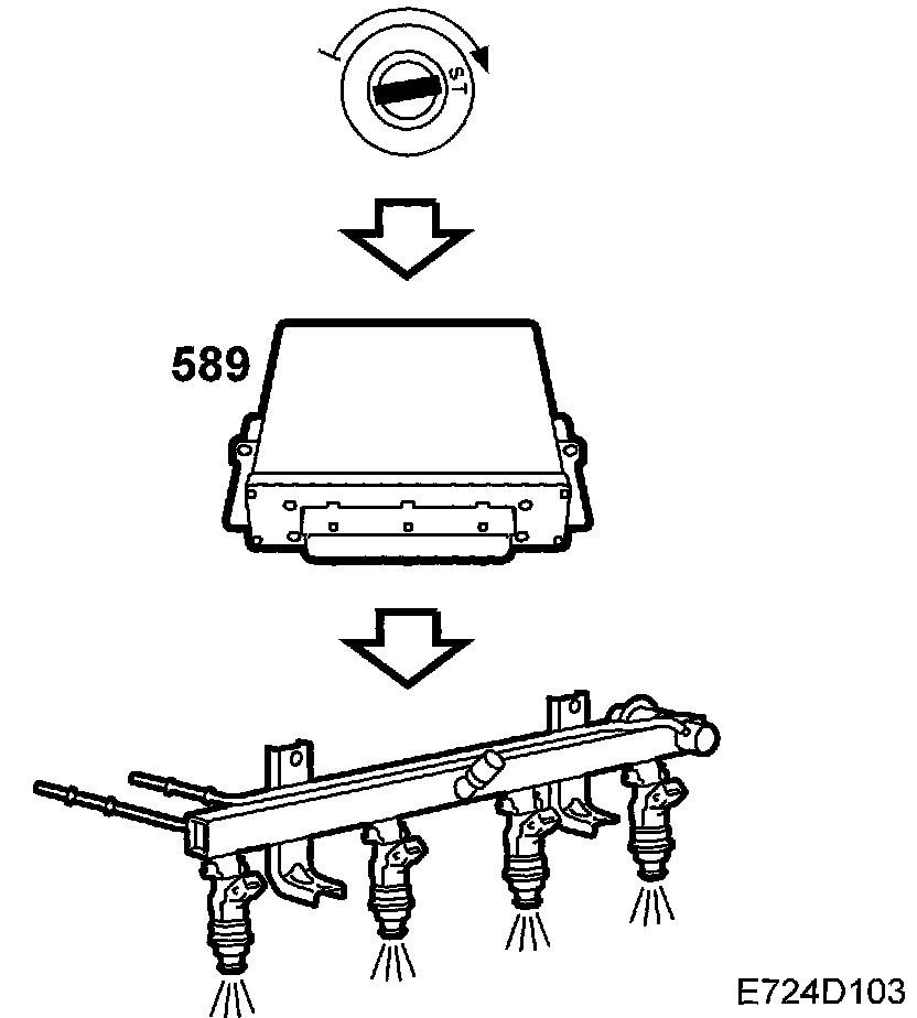 As soon as the control module detects the crankshaft moving, there will be a simultaneous injection with all four injectors. The amount of fuel injected depends on the engine coolant temperature.