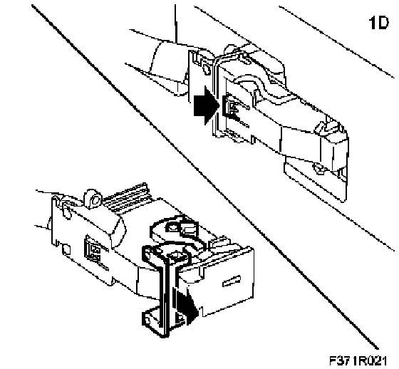 1.F Press in the connector lock tab to release the brace. Release the connector slide while pushing the brace forward.