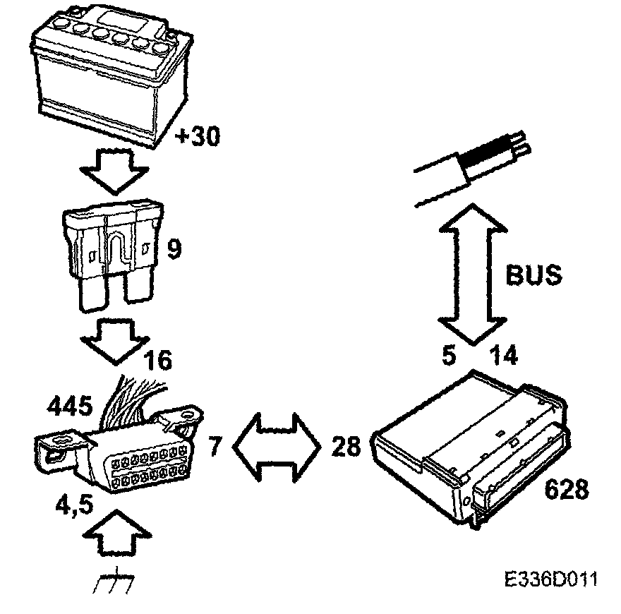 Through contact with the DICE, the diagnostic tool has access to all control modules that are connected to a bus.