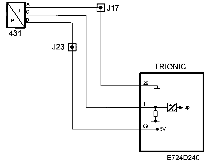 Depending on the pressure in the intake manifold, the pressure sensor delivers a voltage to control module pin 11.