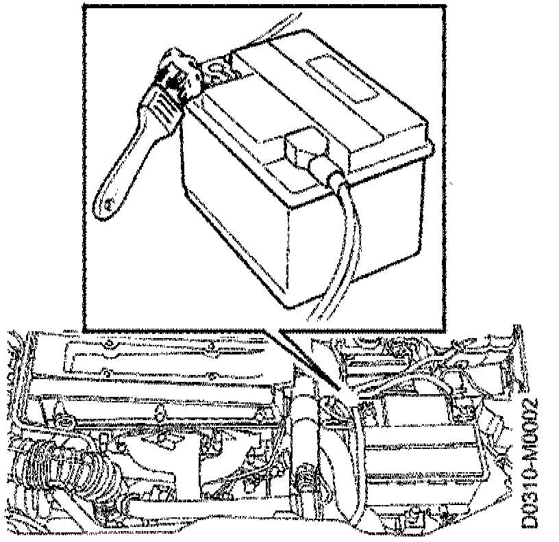 Clean, check and grease the battery terminals. Check the battery mountings and vent hose.
