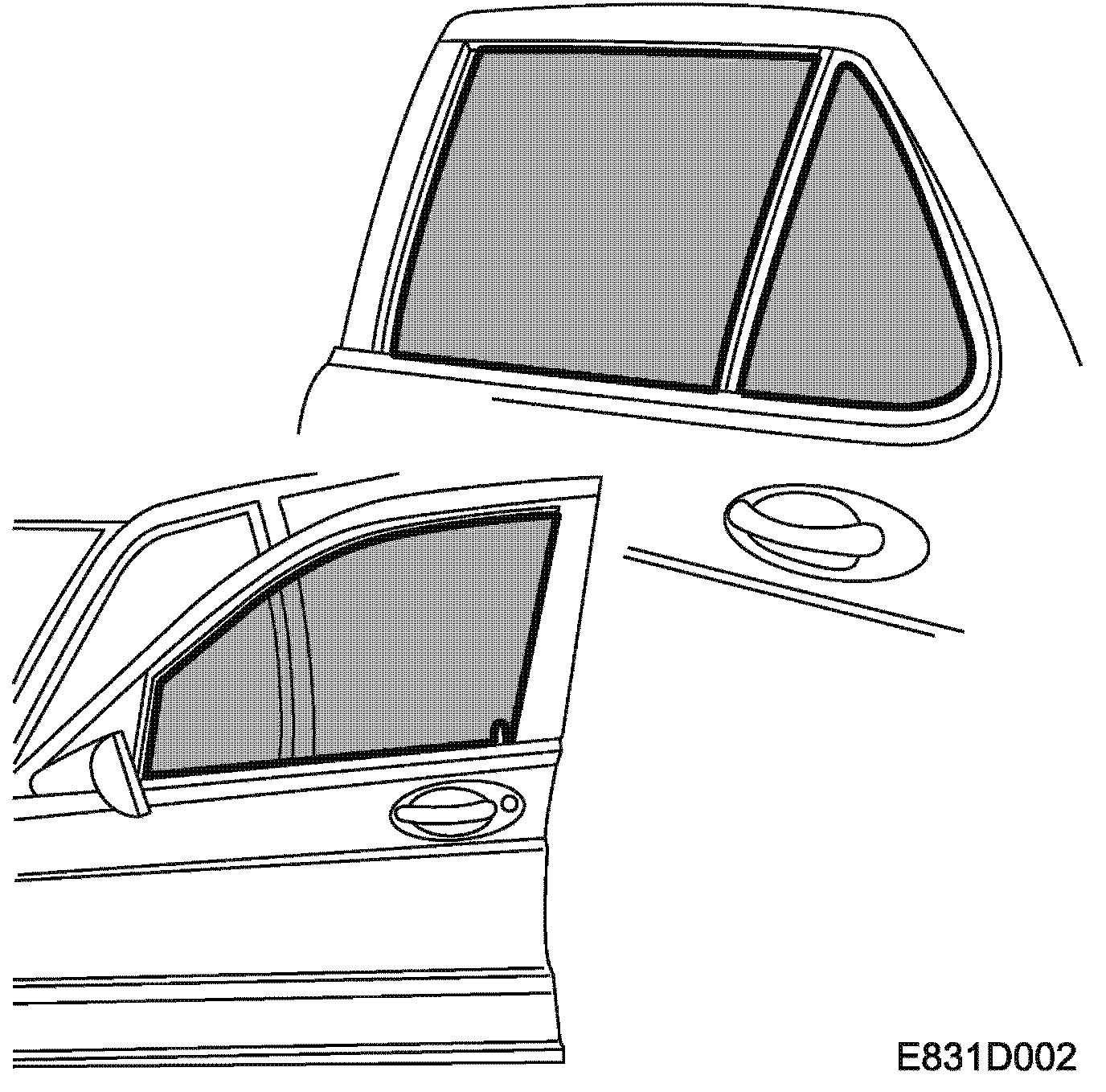 The side windows in the doors are fitted with a rail to the electric window lifts.