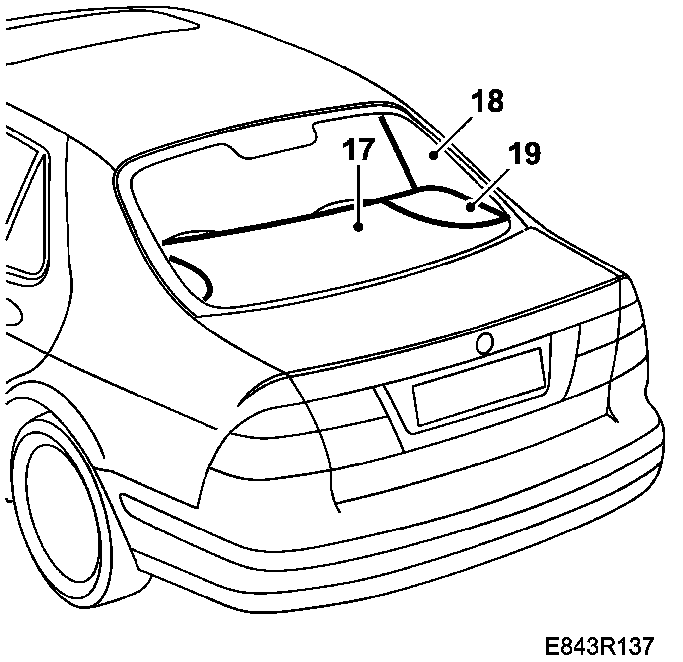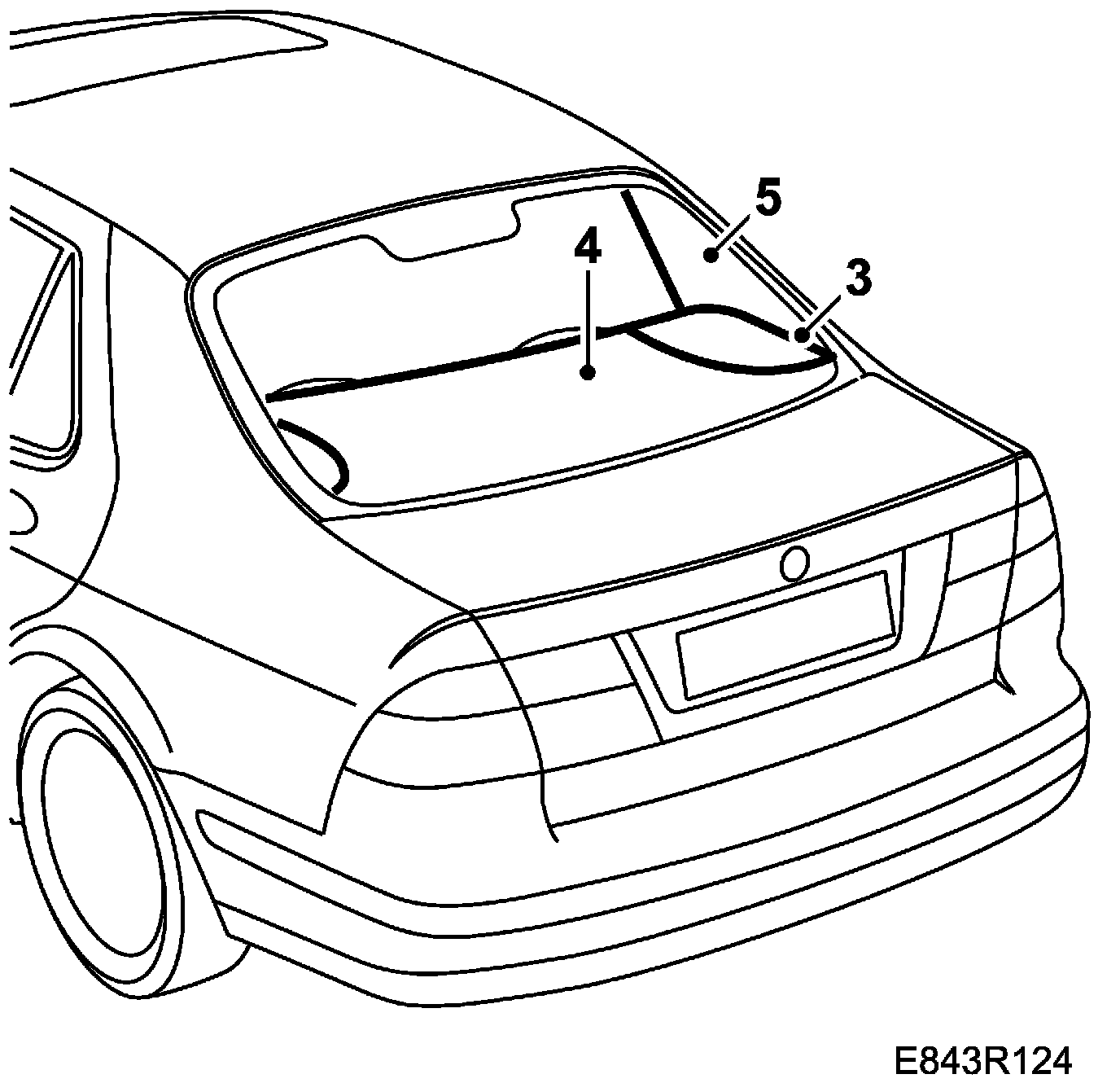 6. Unplug the connectors for the electrically heated rear window and the antenna. Bend the flat pin connection against the window.
