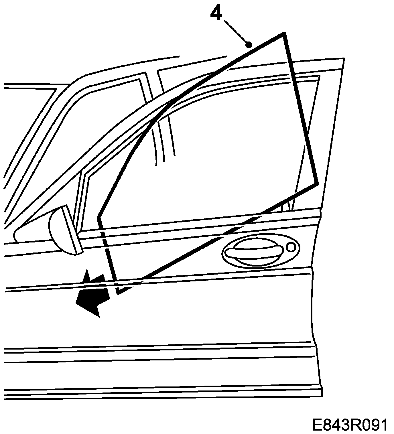 5. Loosen the door mirror retaining screws slightly so that the weatherstrip can easily be removed. Then remove the outer weatherstrip against the window that is secured by one screw at the rear end.
