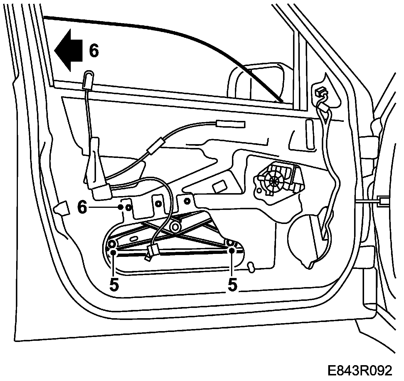 6. Lower the window lift so that the mounting is visible at the top of the lower large hole. The clips on the rollers are then easily accessible.