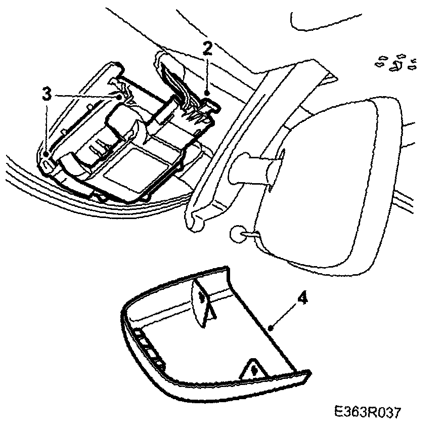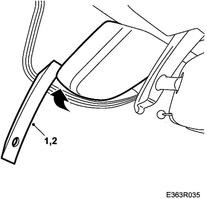 1. Insert the removal tool (tool no. 82 93 474) from below on one side between the windscreen and the cover. Detach the cover by pushing the tool up along the side of the cover and at the same time pressing the cover towards the headlining.