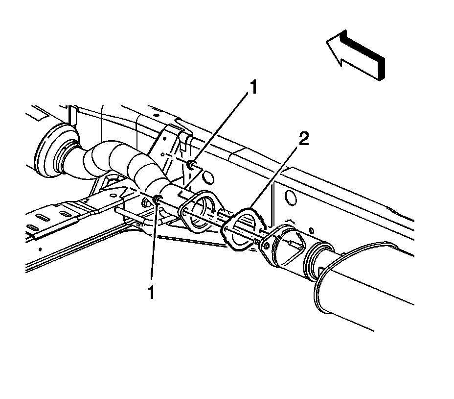 8. If equipped with a 5.3L, or 6.0L engine, remove the muffler to catalytic converter nuts (1).