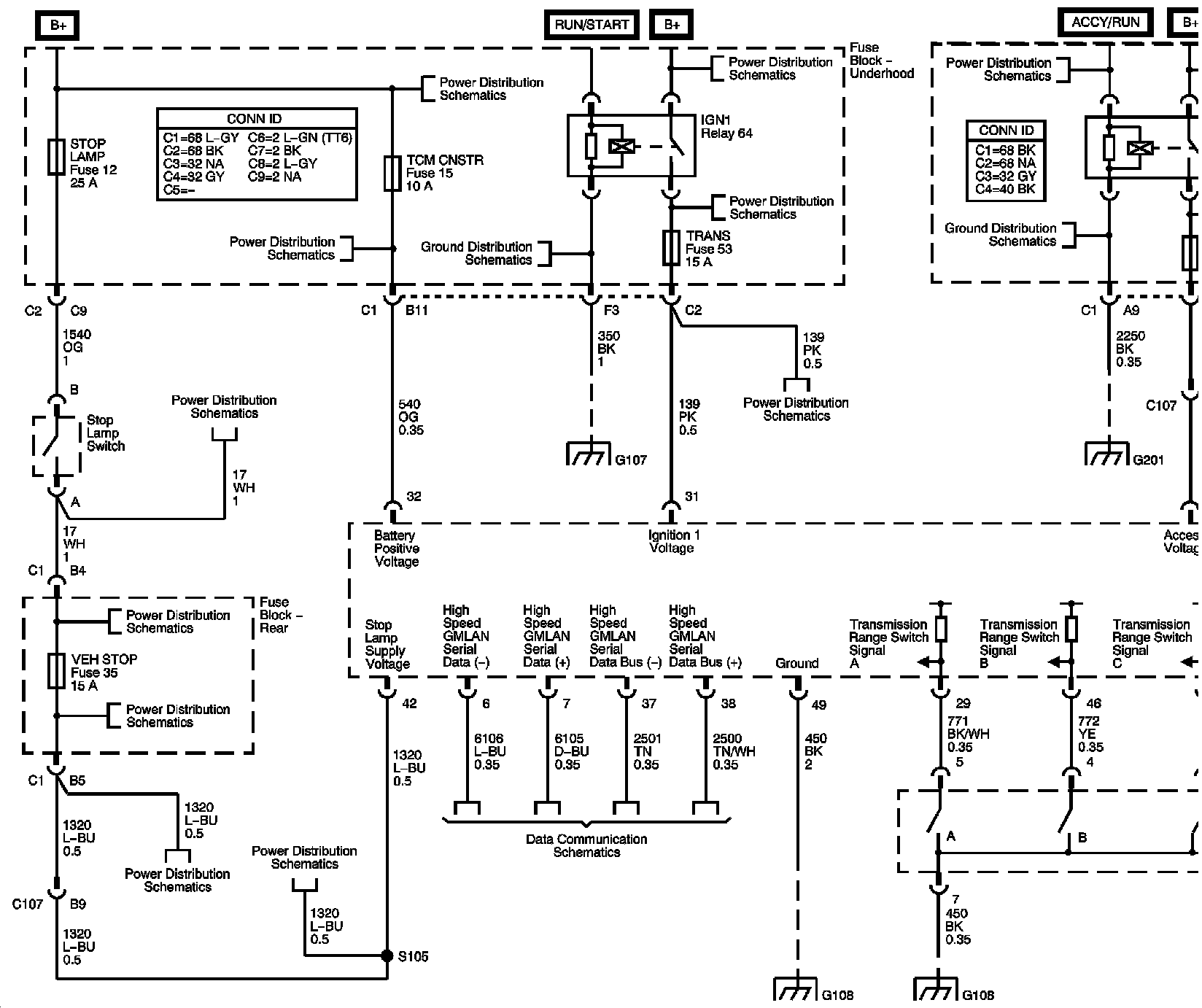 The locations for the Connectors, Grounds, Splices, and Grommets shown within these diagrams can be found via their numbers at Vehicle Locations.