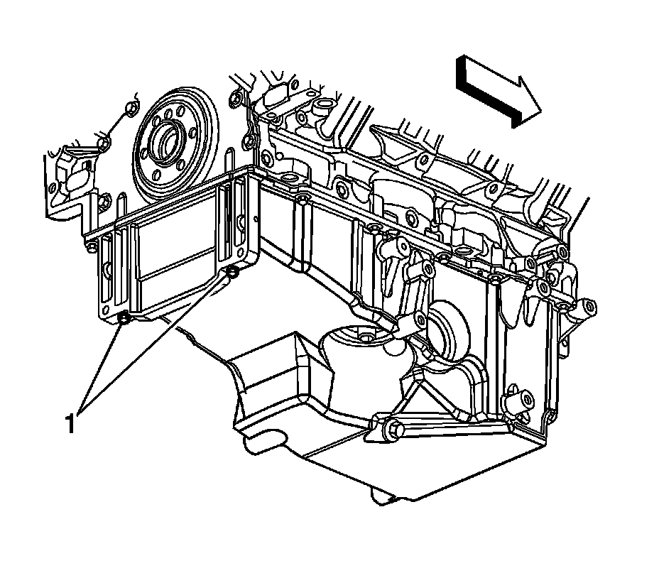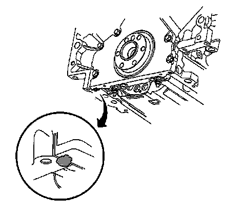 1. Apply a 5 mm (0.2 in) bead of sealant GM P/N 12378190, or equivalent 20 mm (0.8 in) long to the oil pan to engine block junction.