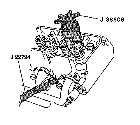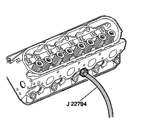 8. Apply compressed air to J 22794 in order to hold the valves in place.