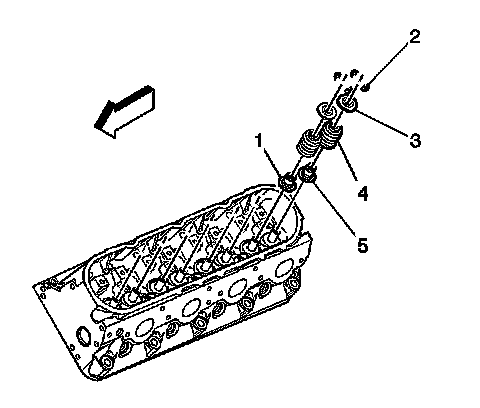 15. Remove the valve stem oil seal/shim assembly (1, 5).