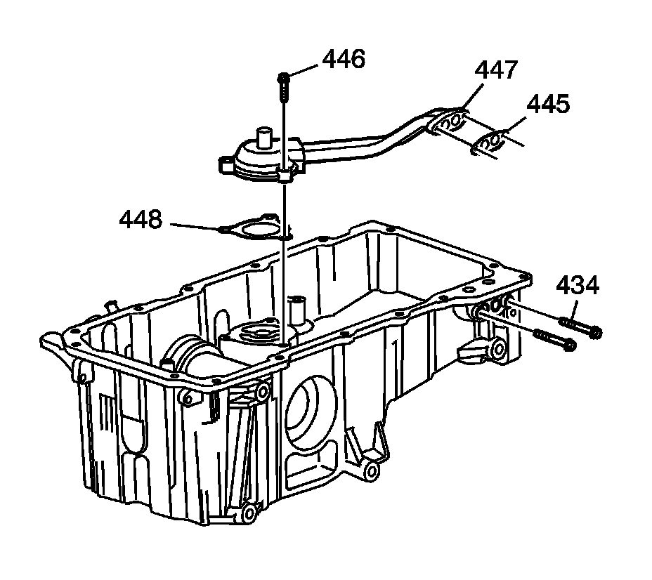 3. Install the oil filter tube bolts (435, 446) and gaskets (445, 448).
