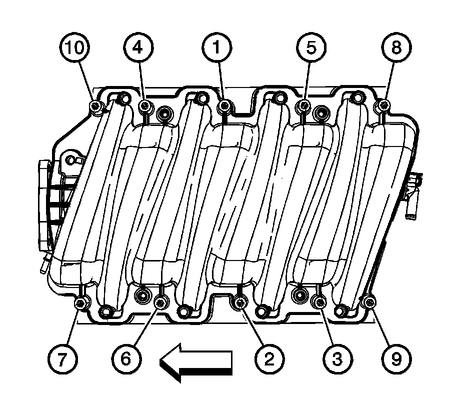 2. Tighten the intake manifold bolts (1-10) a final pass in sequence to 10 Nm (89 in. lbs.).