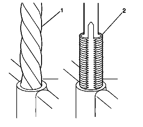 17. Apply threadlock LOCTITE(TM) 277, J 42385-109 (1), or equivalent, to the insert OD threads (2).
