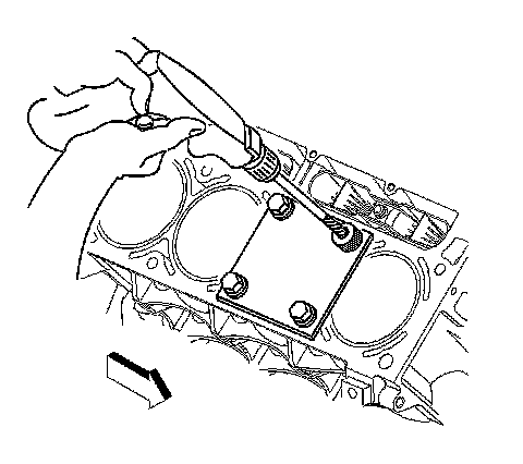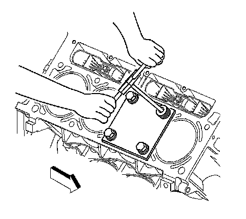 2. Install the fixture plate, bolt, and bushing onto the engine block.