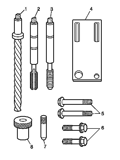 * The use of a cutting type fluid GM P/N 1052864 (Canadian P/N 992881), WD 40(R), or equivalent, is recommended when performing the drilling and tapping procedures.