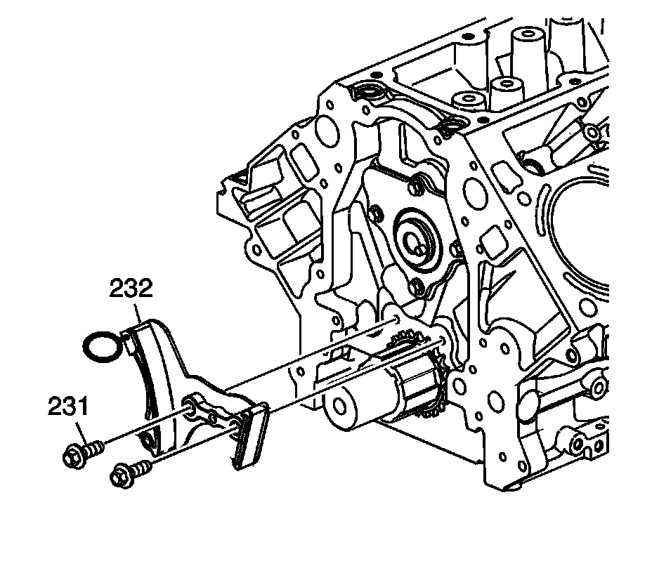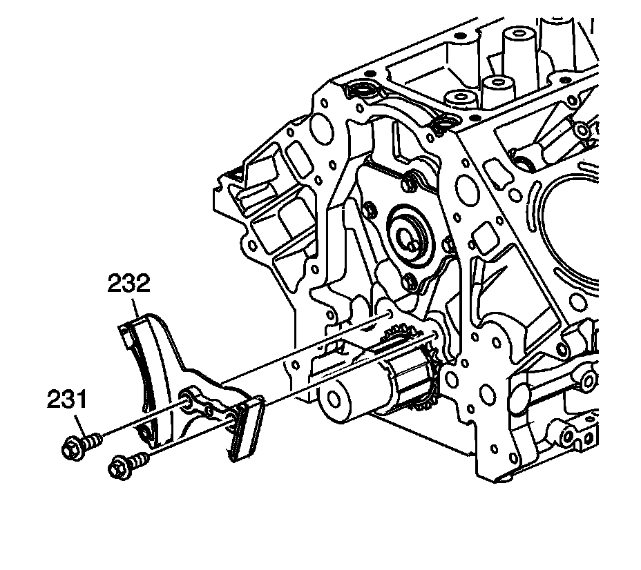 5. Remove the bolts (231) and timing chain tensioner (232).