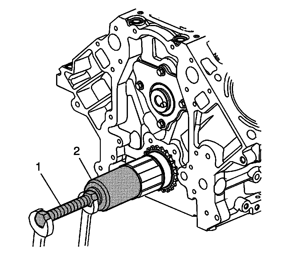 4. Use the J 41478 (1) and the J 41665 (2) in order to install the crankshaft sprocket.