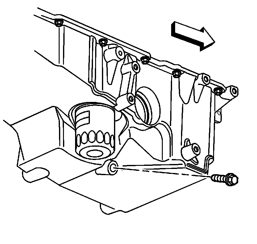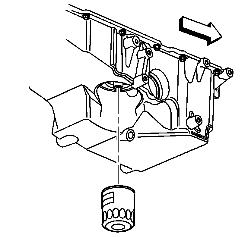 Important: In order to completely drain the oil from the oil pan internal baffling, the bottom of the oil pan must be level during the oil drain procedure.