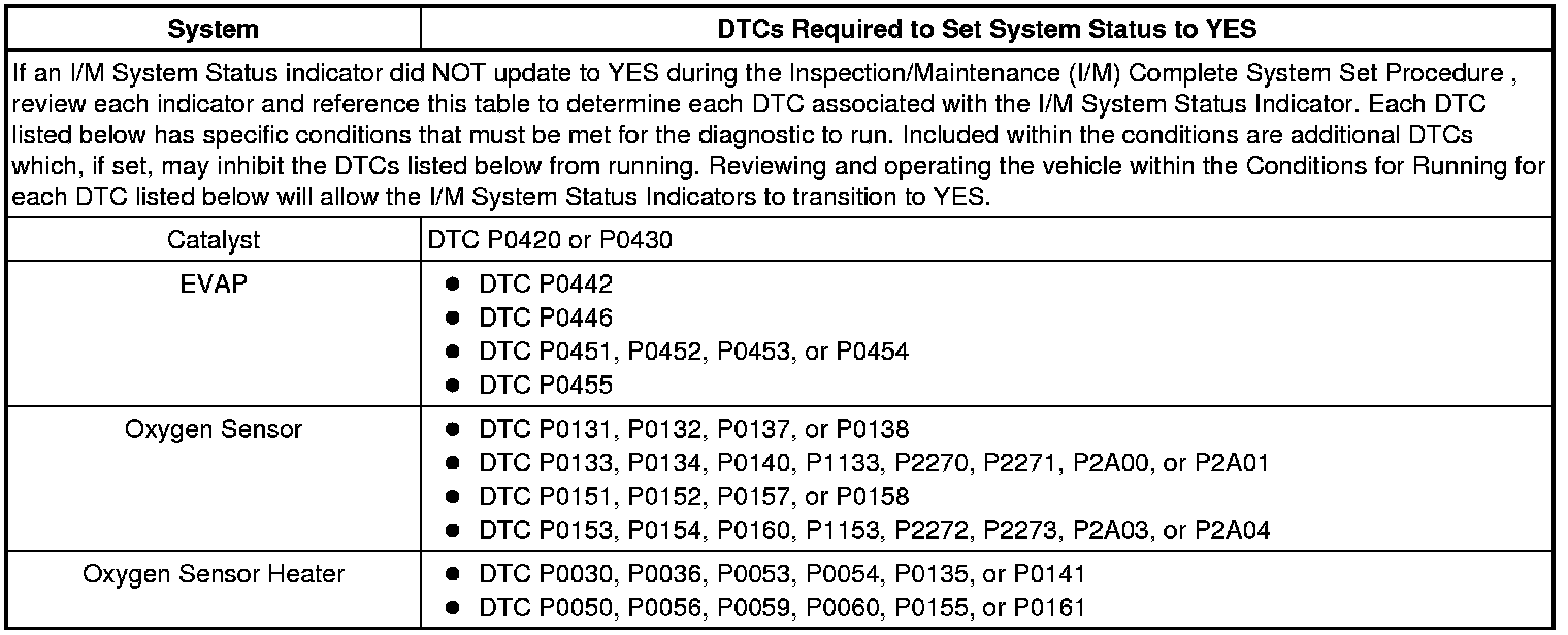 Inspection/Maintenance (I/M) System DTC Table