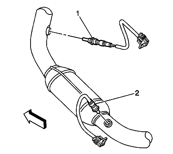 3. Unscrew both rear HO2S sensors (2) from the catalytic converter.