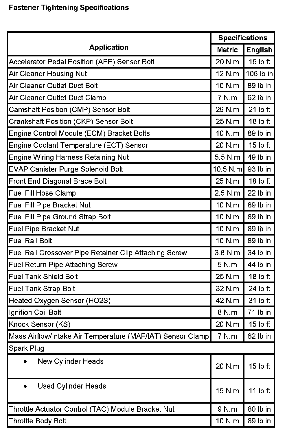 Fuel Delivery and Air Induction: Specifications