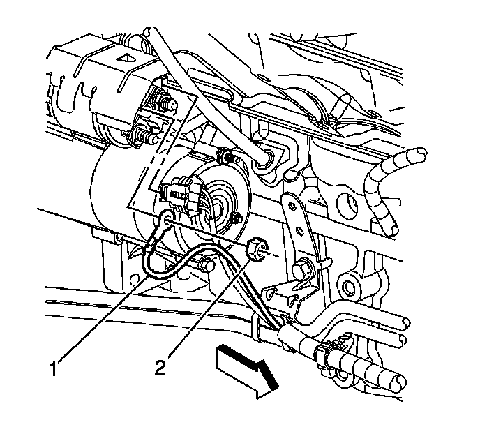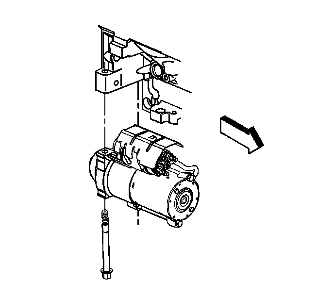 10. Tilt and rotate the starter in order to pass the starter between the transmission oil cooler lines and the engine oil pan.