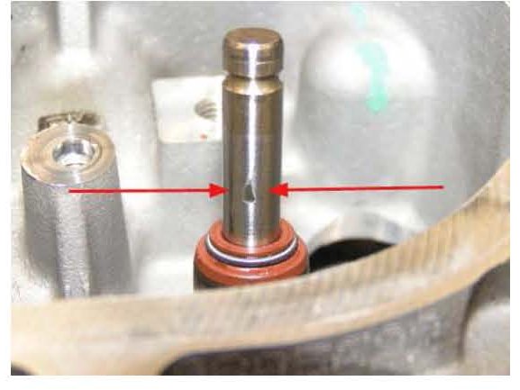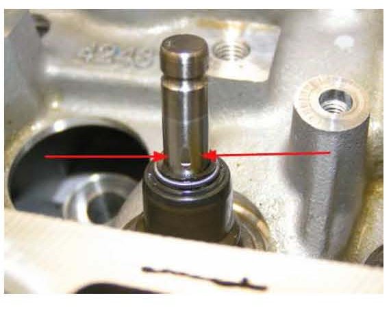 It is possible to see a nicked valve stem through the valve spring coil (a mirror and flashlight will be required), but in some cases the valve spring may need to be removed. Photos of a nicked valve stem are shown above.