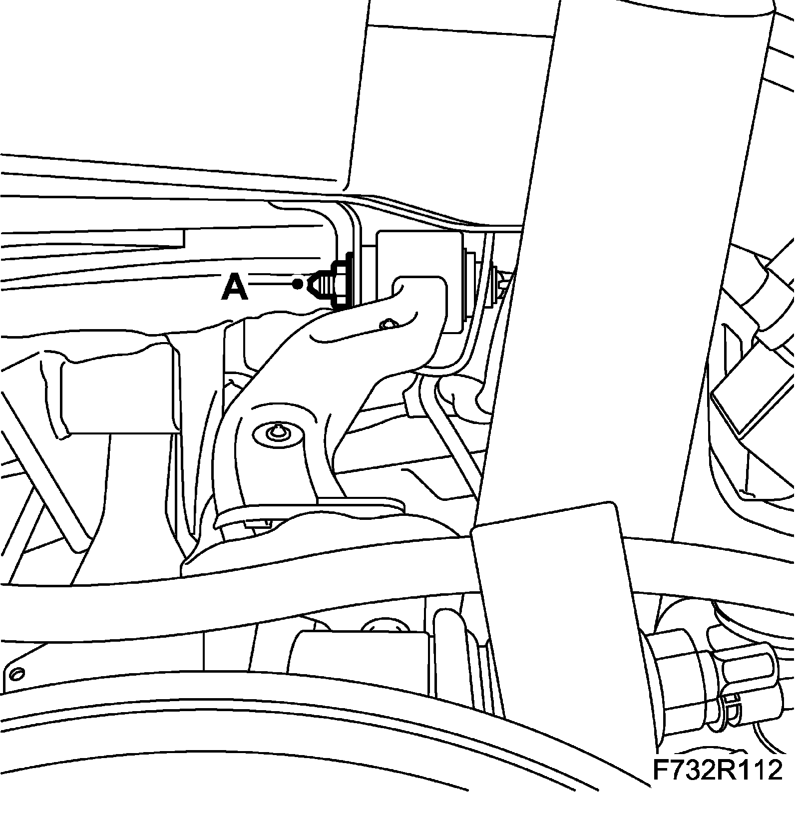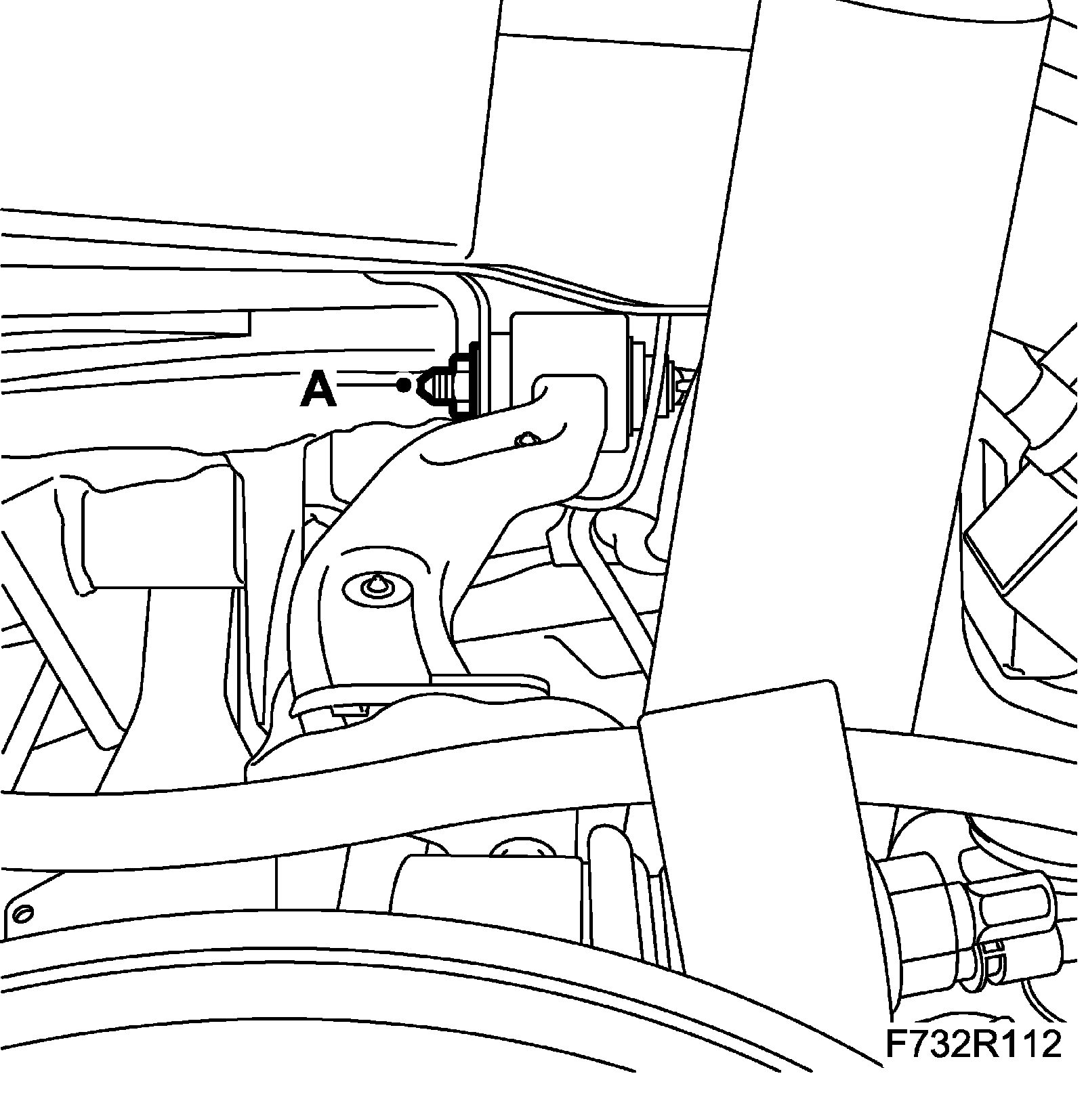 12. Fit the wheel sensor wiring harness (A) to the longitudinal link on both sides.
