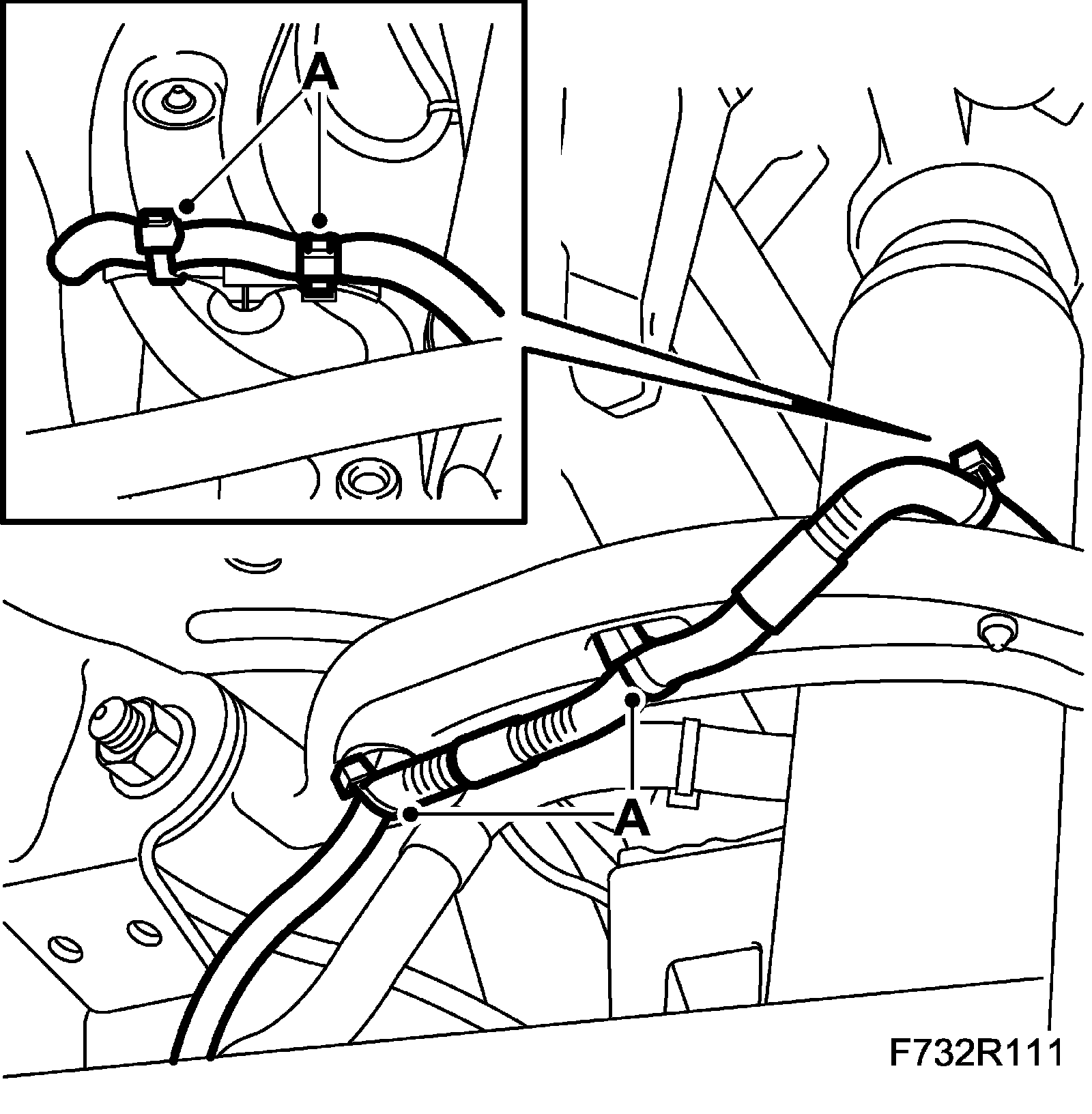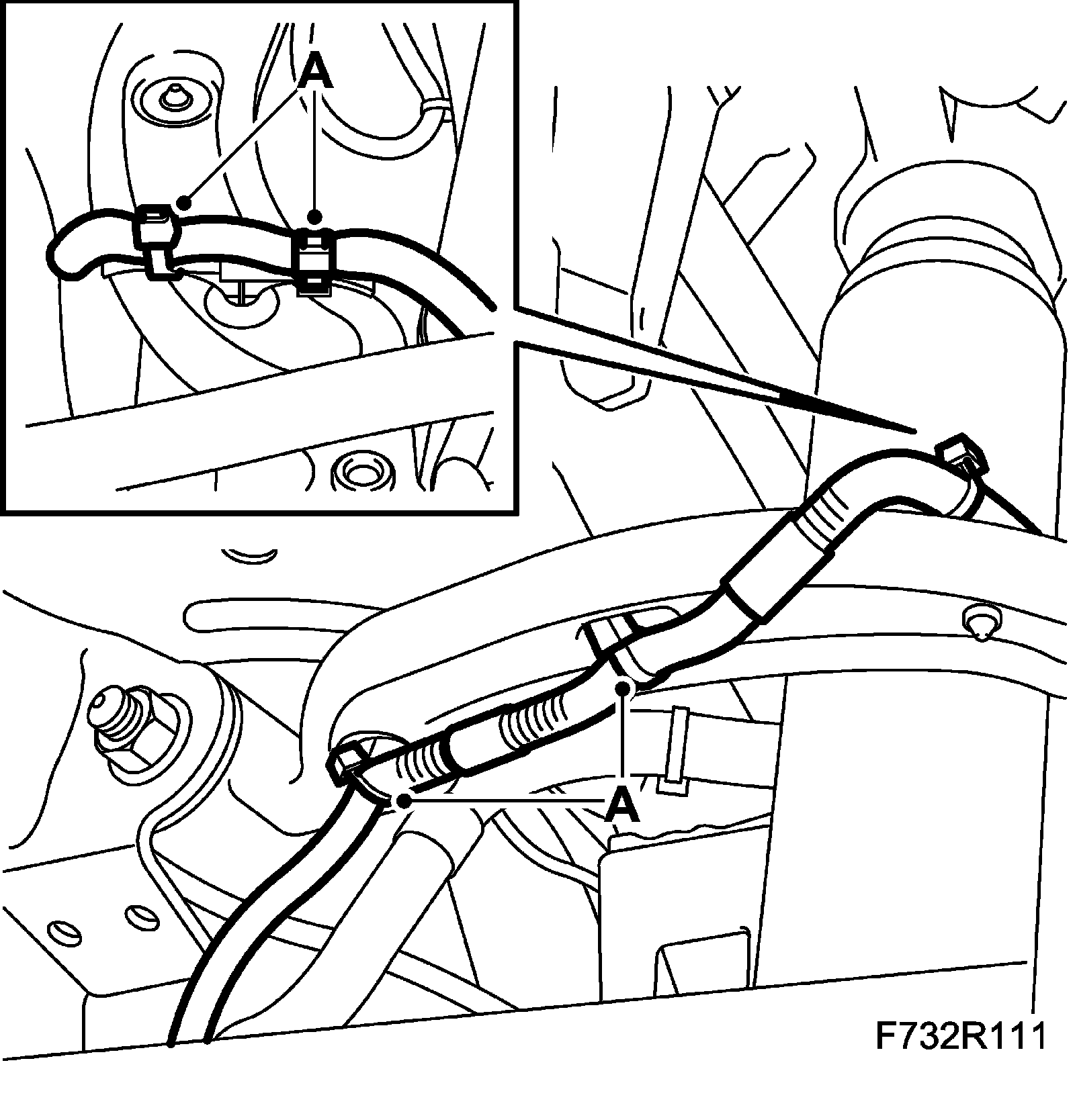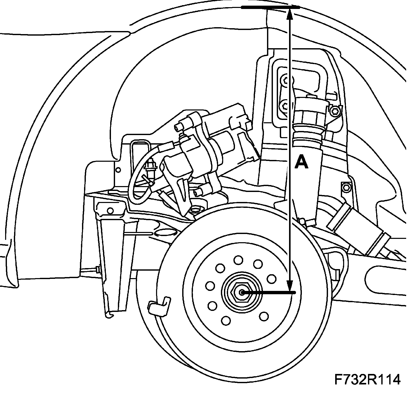 11. Fit the wheel sensor wiring harness (A) to the upper suspension arm on both sides.