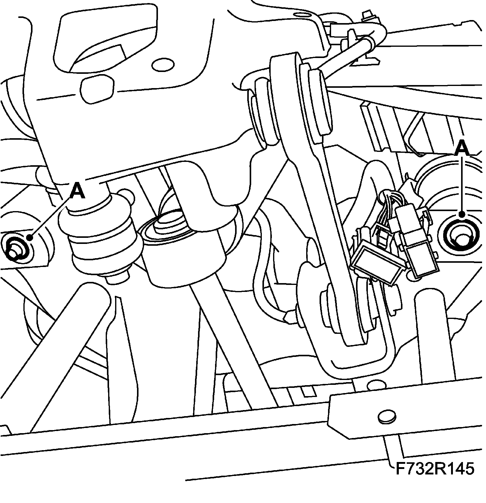 10. Remove the bolts (A) securing the subframe to the body on both sides.