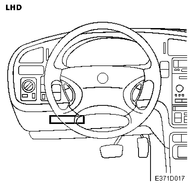 Beneath the dashboard by the steering wheel