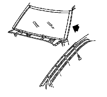 1. Install the side reveal molding (2) to the windshield pillar. Ensure the bottom edge is tucked under the outer edge of the air inlet panel grille.