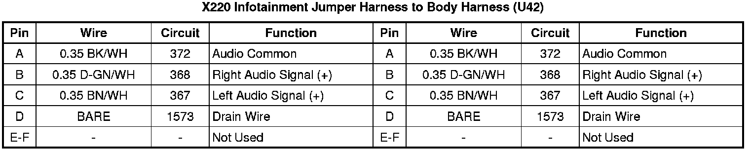 X220 Infotainment Jumper Harness to Body Harness (U42)