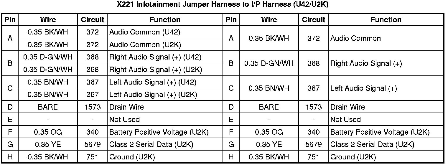X221 Infotainment Jumper Harness to I/P Harness (U42/U2K)