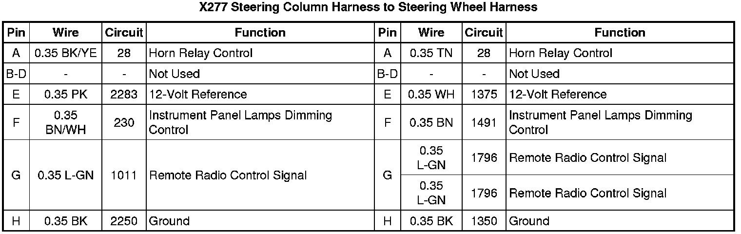 X277 Steering Column Harness to Steering Wheel Harness