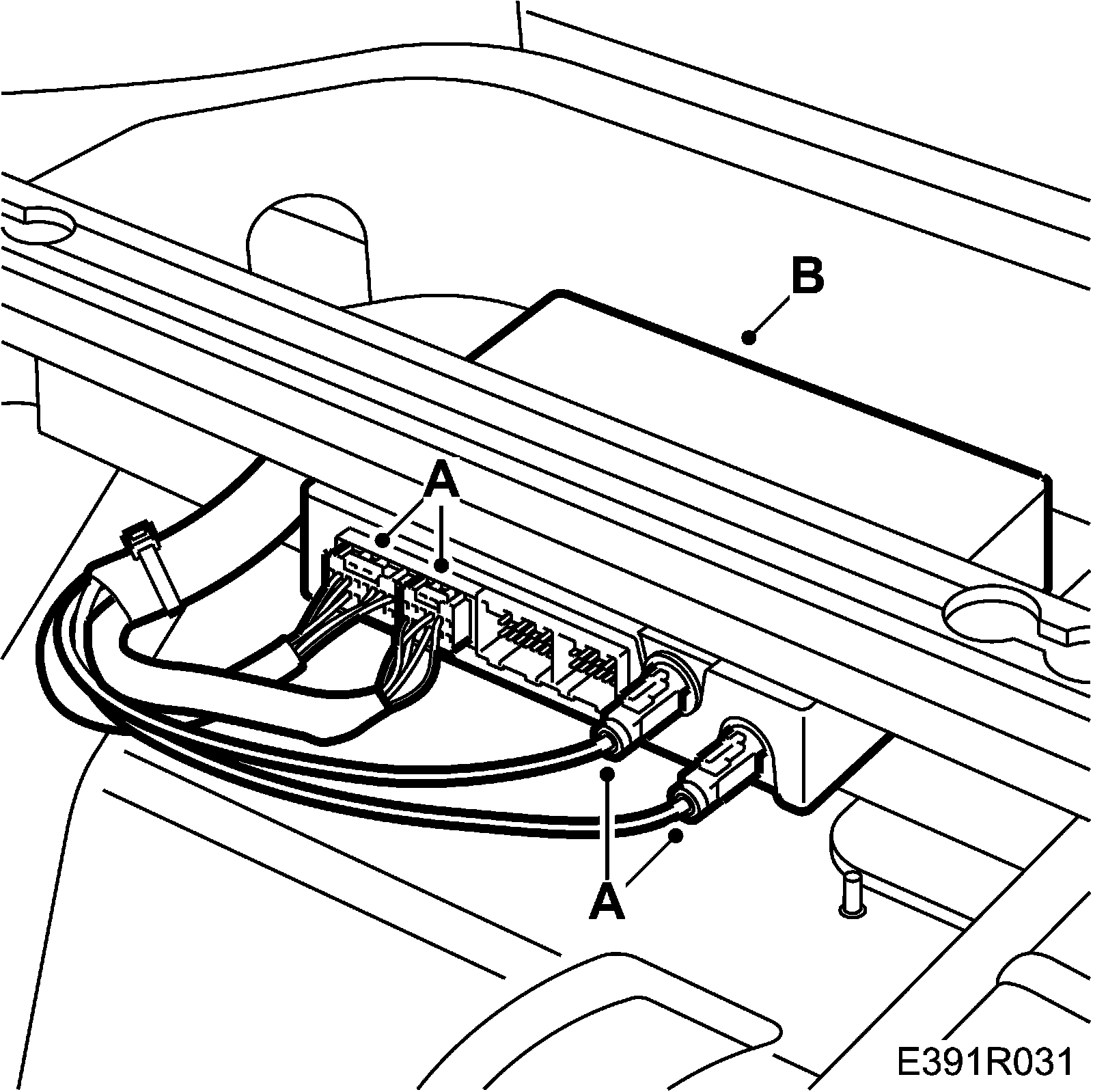2. Place the control module (B) in the correct position. Make sure that the wiring harness is not pinched.