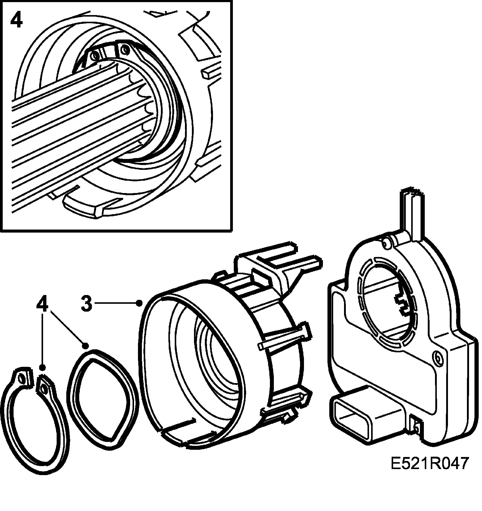 1. Fit the steering wheel angle sensor to the shaft. Make sure the groove in the sensor and the heel on the shaft are aligned.