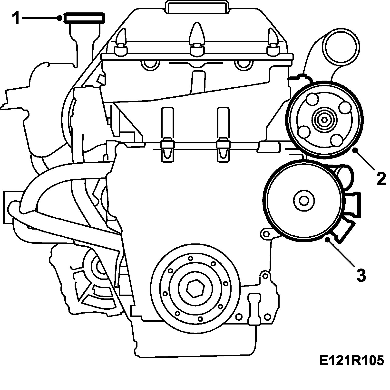 2. Remove power steering pump and bracket with lifting eye.
