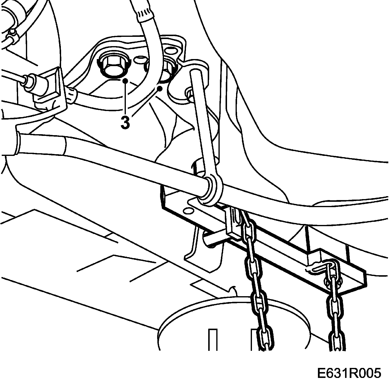3. Slightly undo the bolts to the body bracket of one of the longitudinal links.