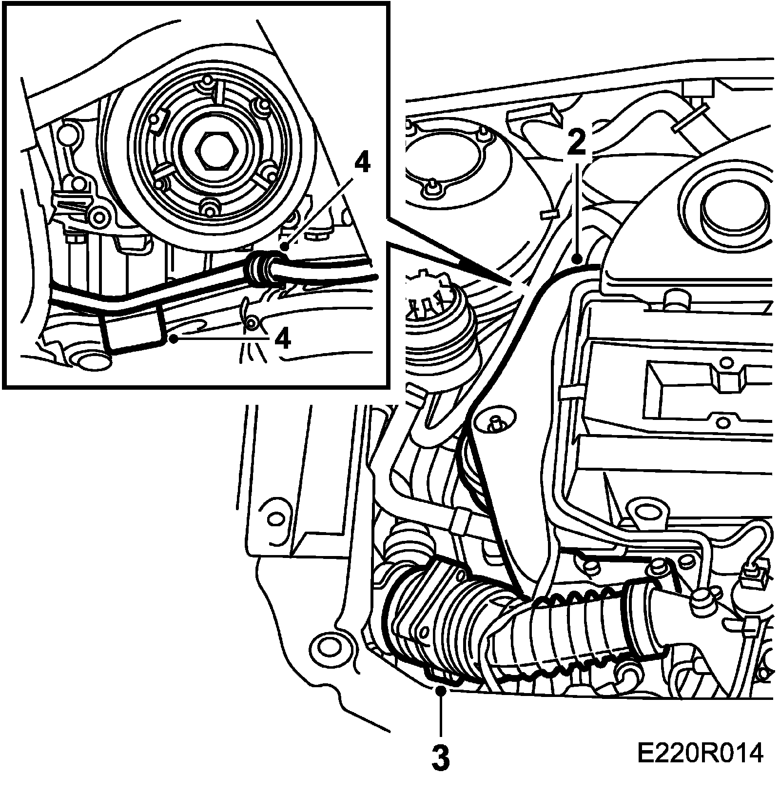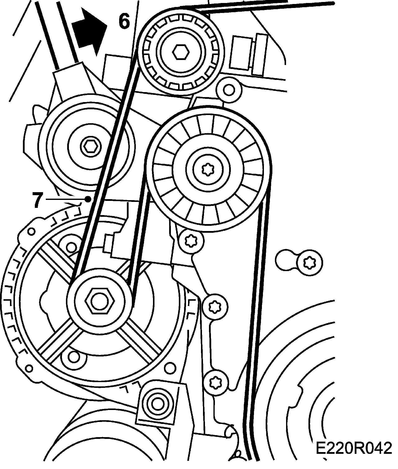 6. Start the engine and run it at idling speed for a while. Switch off the engine and check that the belt is positioned correctly.