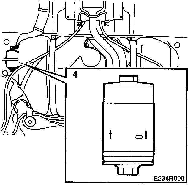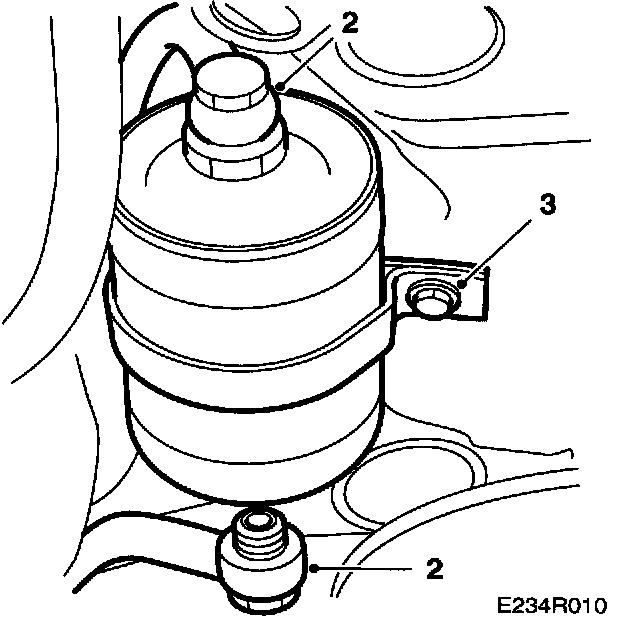 1 Drain all fuel from the filter before removing it. Place a suitable receptacle under the filter to collect the fuel.