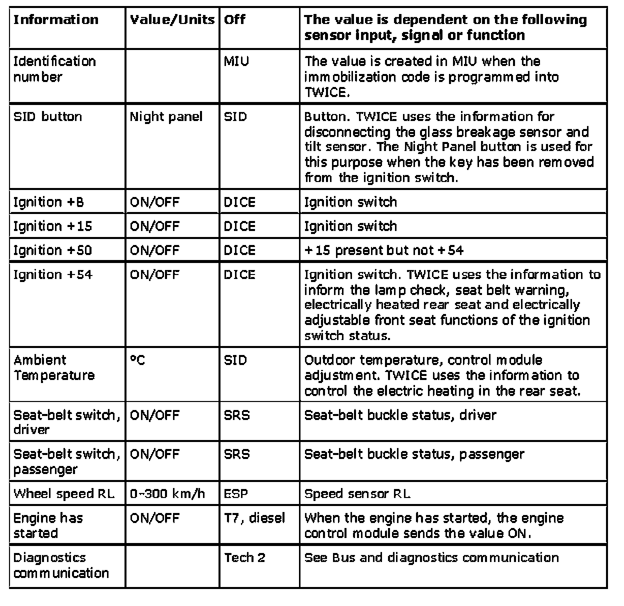 For a further description of the car's bus system, see System overview, bus and diagnostics communication, petrol.
