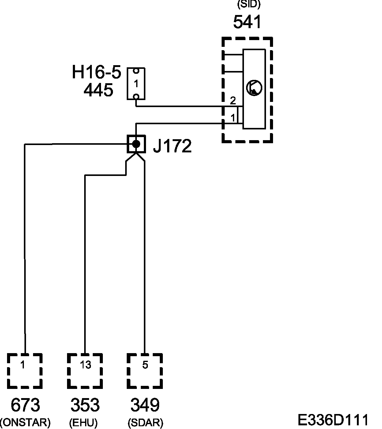 The diagnostic tool communicates directly with the connected control modules via the 1-lead Ibus. The EHU and SDAR control modules on the 1-lead I-bus are connected to pin 1 of the data link connector via an internal connection (between pins 1 and 2) in the SID control module.