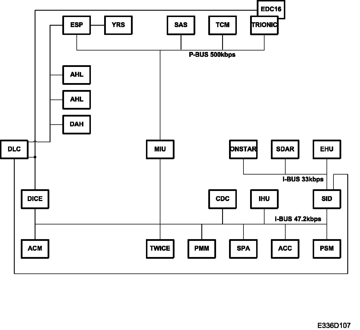 The data transfer rate of the P-bus is ten to fifteen times faster than that of the I-bus. The reason for this is that the powertrain systems need information with the least possible delay, as for example when providing air mass compensation when the selector lever is moved from N to D or torque limitation in connection with gear changing.