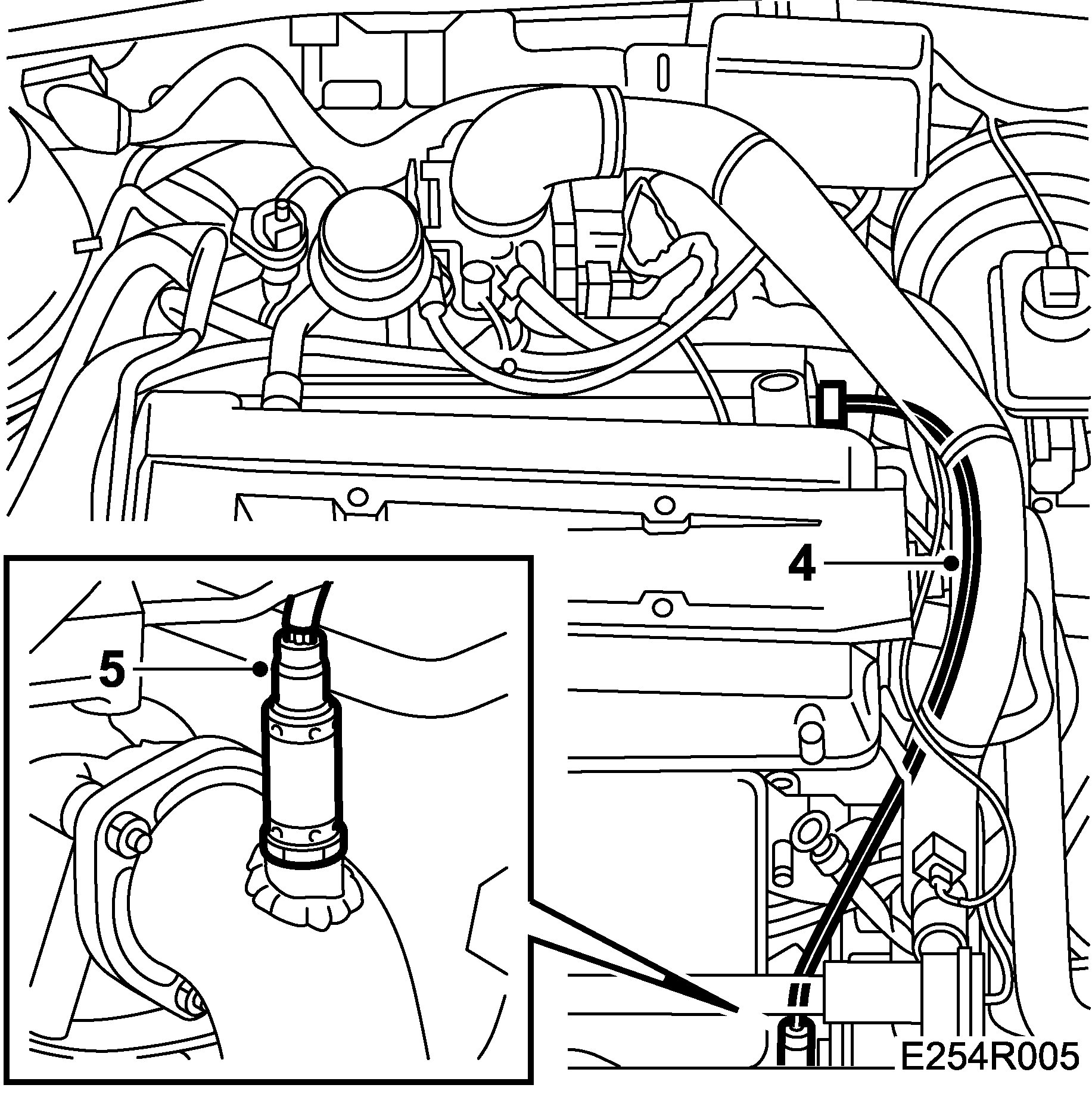 4. Withdraw the oxygen sensor's connector and cable, taking care to avoid breaking same.