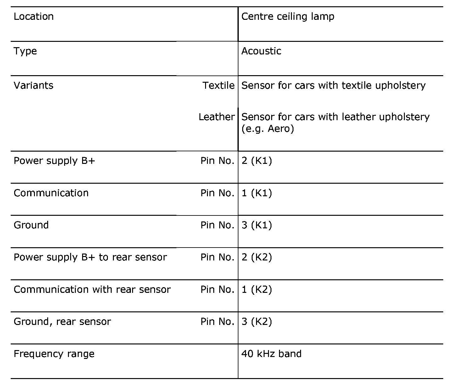 To obtain the correct function and sensitivity of the antitheft alarm, it is important that the correct variant of glass breakage sensor is used.