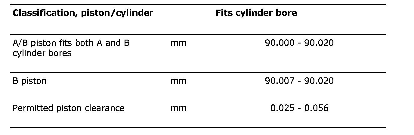 The piston classification is stamped on the piston crown roof. The piston classes for service are B