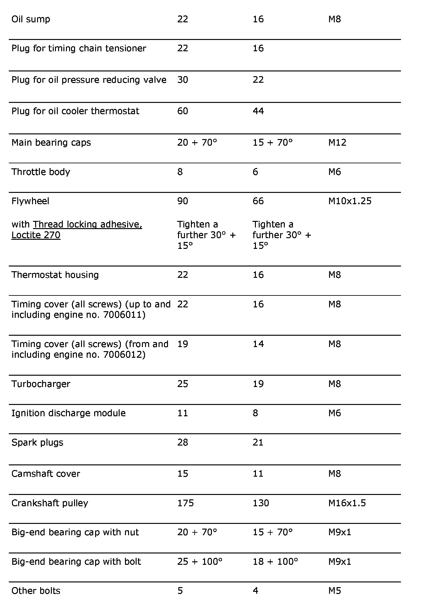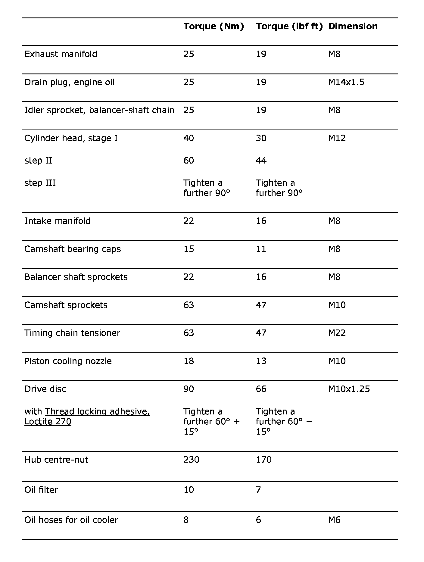 Tightening torques
