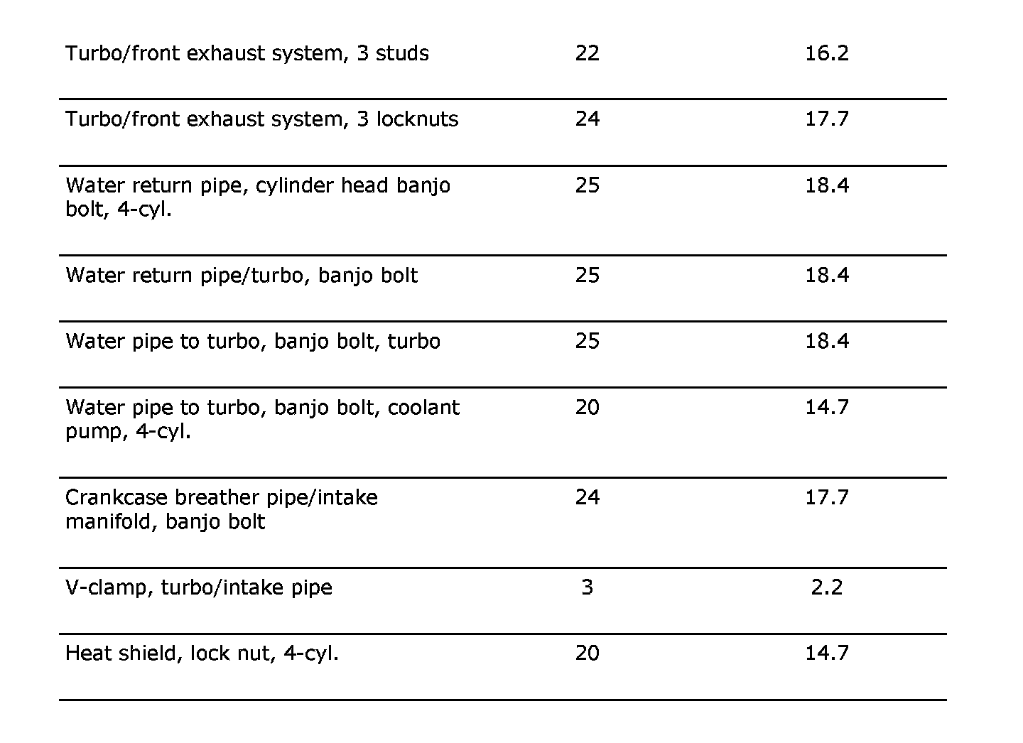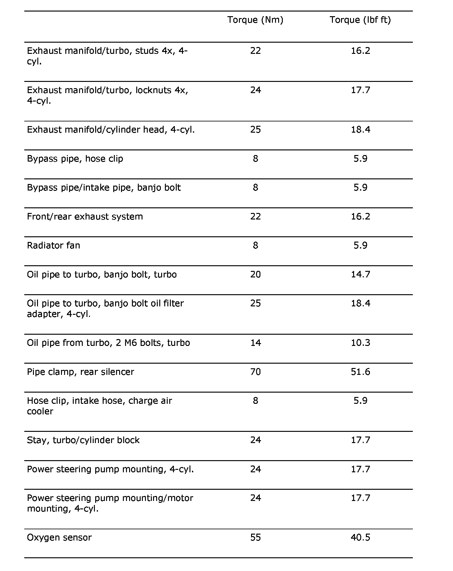 Tightening torques